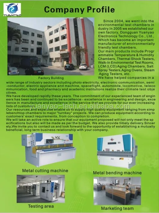 If you are interested in temperature humidity stability chamber, please kindly contact Robin Wang via e-mail sales05atyuanyao-tech.com or trademanager yuanyaotech or skype robinwang00. Welcome to enquire and visit us.